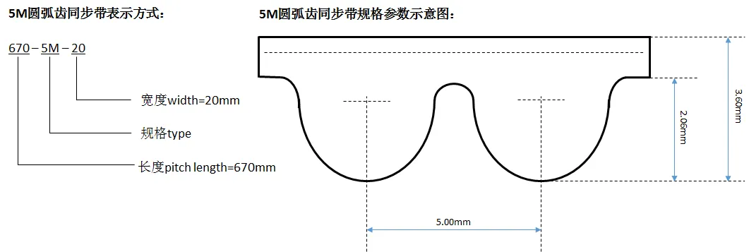 5M同步帶是(shì)HTD圓弧齒同步帶中一(yī)類非常常見(jiàn☆)的(de)型号,其兩齒間(jiān)距為(wèi)5mm,齒厚度為(wèi)2.06mm,帶厚則為(wèi)3.6mm;圓弧齒的(de)設計(jì)使其與皮φ帶輪的(de)契合度更高(gāo),傳動效率更加,同時(shí)搞得(de)契合度也(yě)保證了(le)其使用(yòng)壽命是(shì)梯形齒同步帶的(de)1".5倍。
